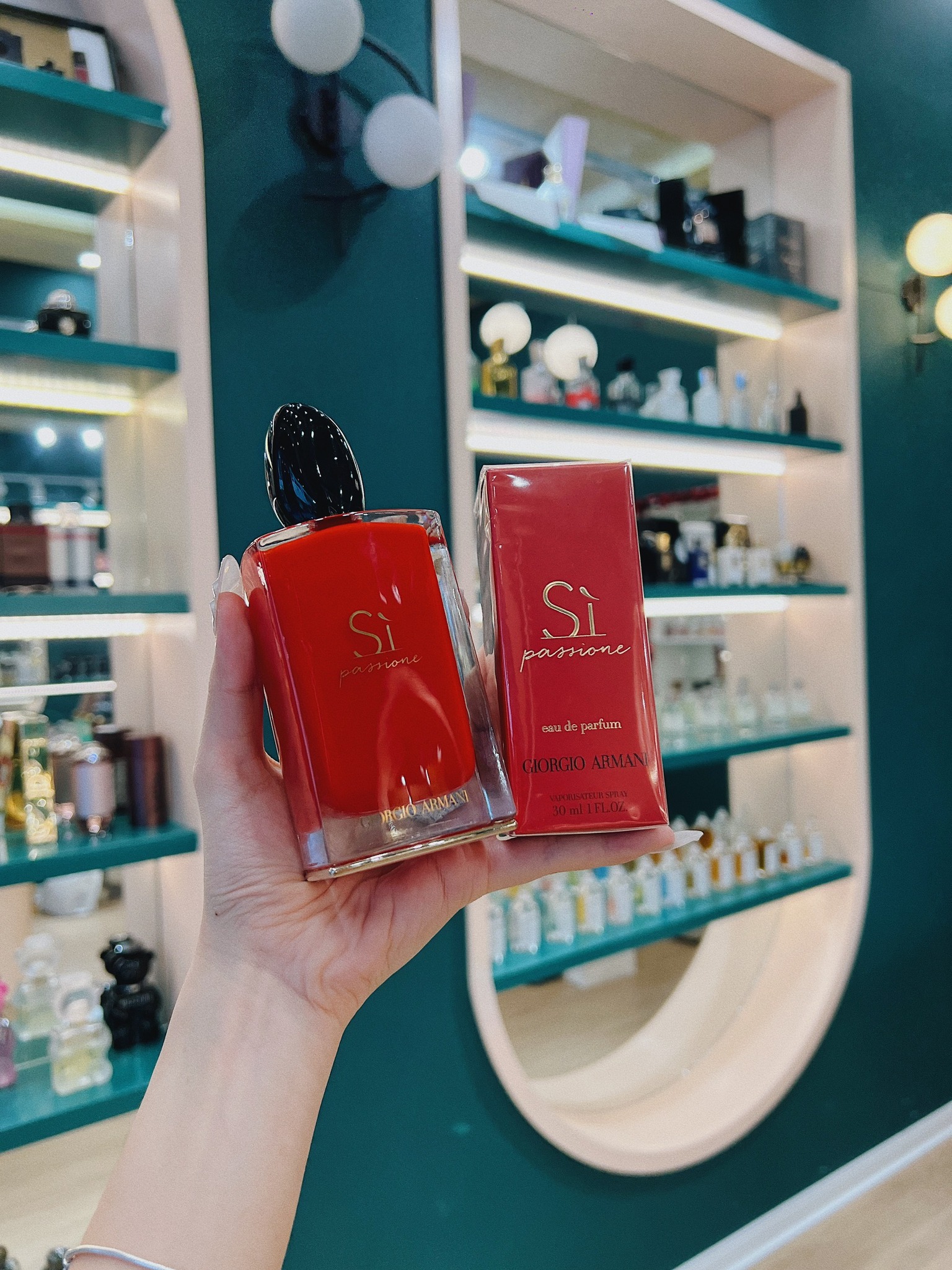 Trước nay mỗi chai nước hoa đều mang 1 tone mùi, chai thì mùi mát, chai thì mùi ấm, chai thì mùi ngọt... Riêng chai Sì đỏ, là chai nước hoa đầu tiên được kết hợp giữa cả 3 tầng mùi : mùi cay nồng của hạt tiêu hồng + mùi ấm của vani và gỗ + mùi tươi mát của Hoa Hồng hoa nhài và Nho chín.