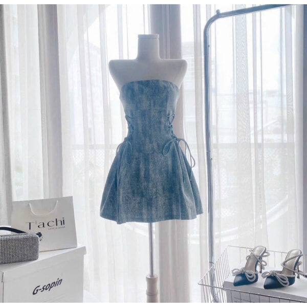 Đầm cúp ngực demin dáng ngắn