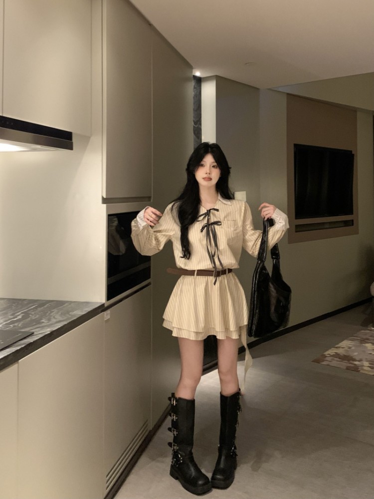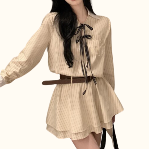 Váy Sơ Mi Sọc Nơ | Unnie Sơ Mi