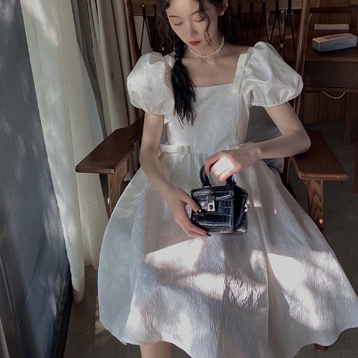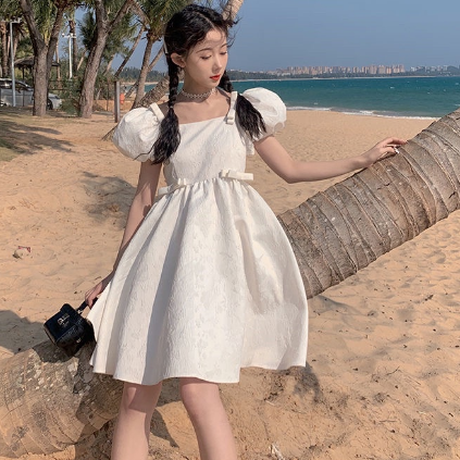 Đầm dự tiệc đính nơ dễ thương dáng ngắn xoè Ulzzang