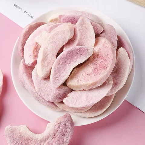 Khi thưởng thức bạn sẽ cảm nhận những quả đào hồng sấy giòn tan, có vị chua ngọt hài hòa tự nhiên rất hấp dẫn. Màu hồng đặc trưng của đào rất bắt mắt nên có thể đưa vào để tô điểm thêm sắc cho nhiều loại bánh kẹo.
