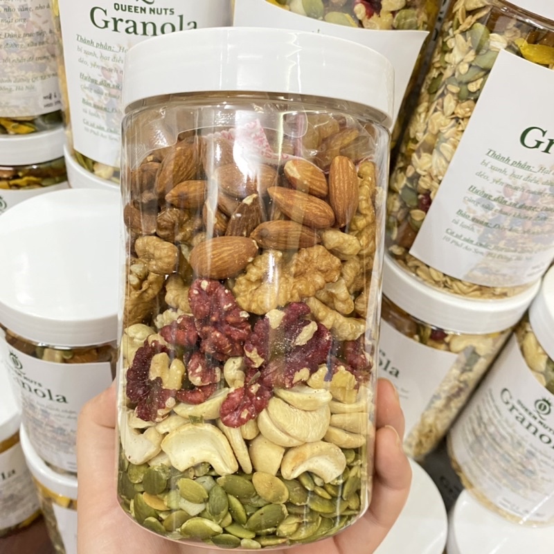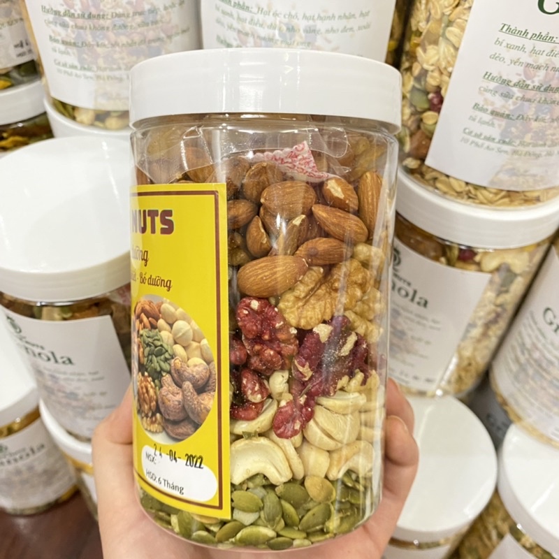 🌱Hộp mix 6 loại hạt và hoa quả sấy: óc chó đỏ, óc chó vàng, hạnh nhân, bí xanh, nho khô