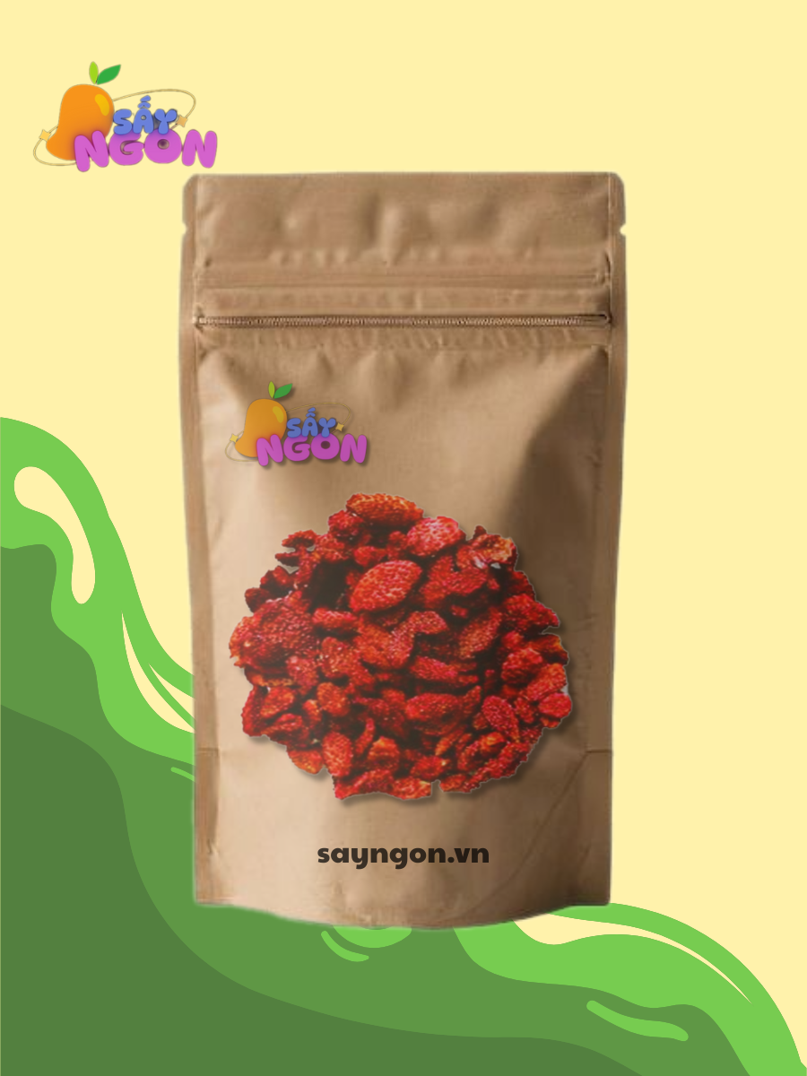 Dâu sấy dẻo được làm từ những quả dâu tươi chín mọng, giàu vitamin C và chất chống oxy hóa. Nhờ công nghệ sấy dẻo hiện đại, sản phẩm giữ nguyên được màu sắc tự nhiên, hương thơm đặc trưng và vị chua ngọt hài hòa. Với độ dẻo mềm dễ ăn, đây là món ăn vặt lý tưởng cho mọi lứa tuổi – đặc biệt là người yêu thích thực phẩm lành mạnh, ít đường và tốt cho tiêu hóa.