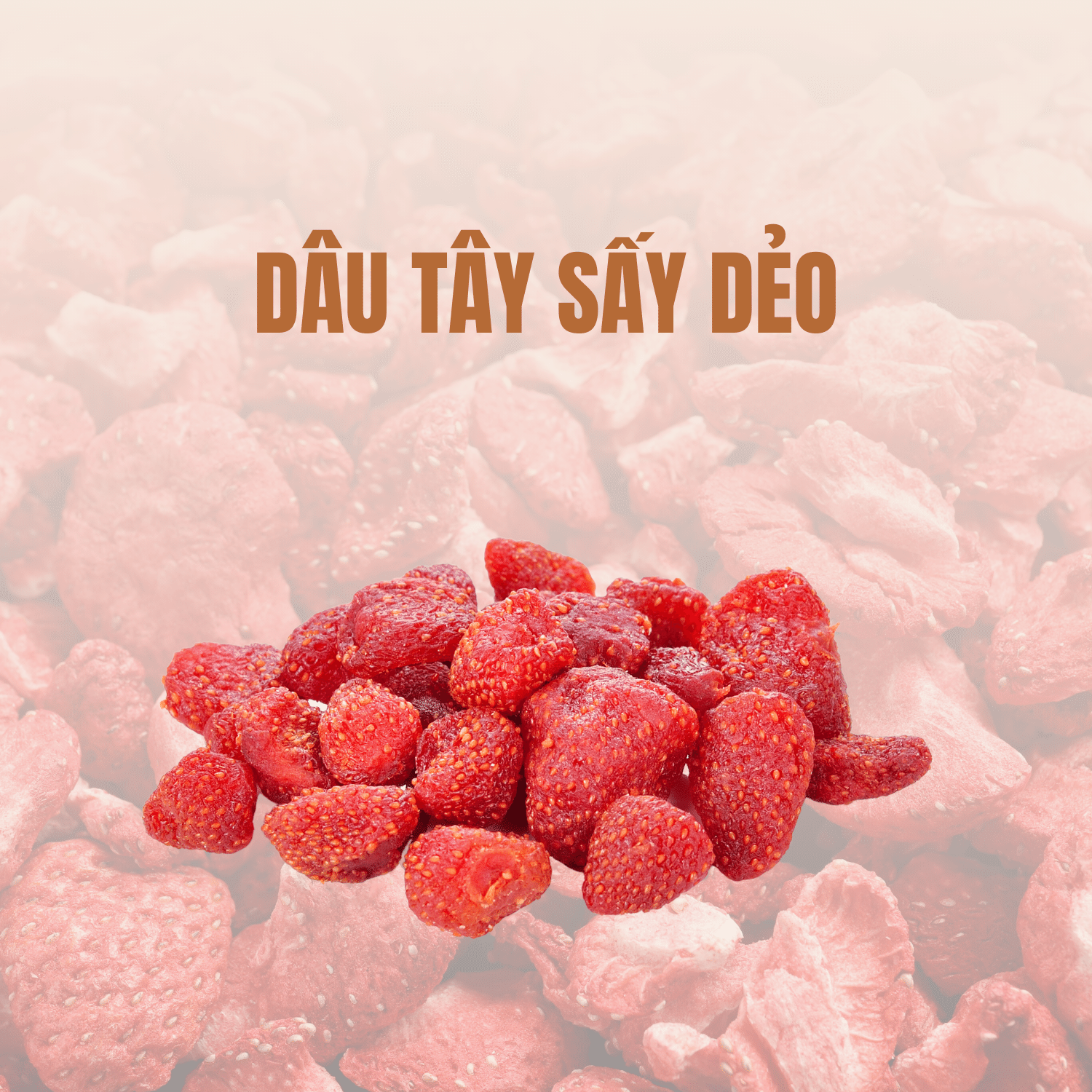 Dâu tây sấy dẻo cũng rất linh hoạt trong việc sử dụng. Bạn có thể thưởng thức chúng trực tiếp làm món ăn vặt ngon lành, hoặc thêm vào các món sữa chua, bánh ngọt, muesli, hoặc salad trái cây để tạo thêm hương vị và độ ngọt tự nhiên.