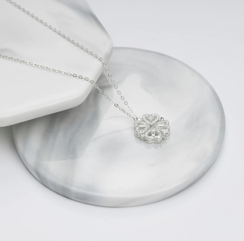 – Dây chuyền CDE Heart Four-Leaf Clover Silver Necklace