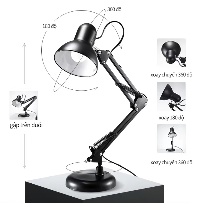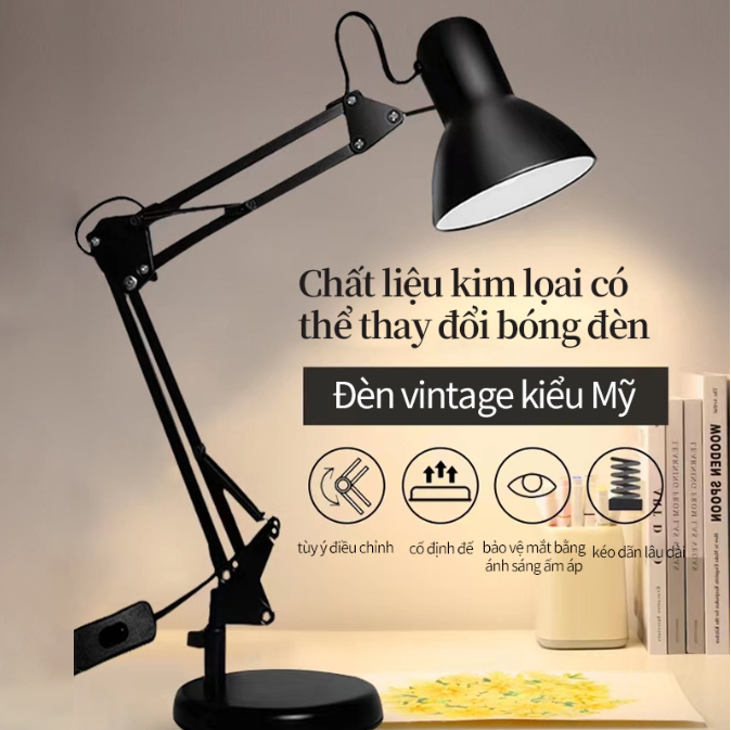 Đèn để bàn kèm kẹp bàn đa năng Đen