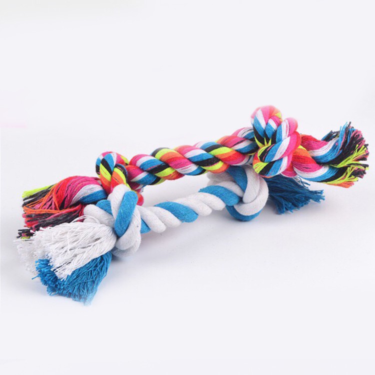 THÔNG TIN SẢN PHẨM: - Tên sản phẩm: Đồ chơi cho thú cưng dây thừng giảm stress Kích thước: 20 cm Vật liệu: Làm từ chất liệu sợi dệt an toàn, màu sắc thu hút, giúp thú cưng hăng say chơi chúng, tạo sự vận động khỏe mạnh và nhanh nhẹn Sản phẩm đồ chơi tương tác với thú cưng này là lựa chọn tuyệt vời kích thích bản năng nhai – gặm tự nhiên của thú cưng giúp làm sạch răng và nướu. Khi các bé đã có thứ để gặm, hiển nhiên chúng sẽ hạn chế cắn phá đồ đạc trong nhà, cũng như giải tỏa căng thẳng hơn khi phải ở nhà 1 mình. Ngoài ra, các bé luôn cần phải duy trì vận động trong nhà để có thể trạng tốt nhất. Việc ở nhà và ăn quá nhiều quà vặt là nguyên nhân chủ yếu dẫn đến tình trạng béo phì của các bé. Sử dụng các món đồ chơi cùng thú cưng sẽ giúp tăng tương tác giữa thú cưng và chủ, khiến các bé yêu quý chúng ta hơn. Sản phẩm đồ chơi tương tác với thú cưng được làm bởi chất liệu thừng cotton chất lượng cao, dệt đan chắc chắn, bền bỉ đáp ứng nhu cầu gặm cắn của chó mèo. - Xuất xứ: Trung Quốc - Sản xuất bởi: Yiwu Hawo Pet Products Factory