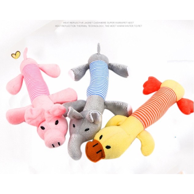 Đồ Chơi Thú Nhồi Bông Nhai Gặm Cho Chó Mèo Có 4 loại thú: vịt trời, heo, voi, vịt Kích Thước dài 31cm