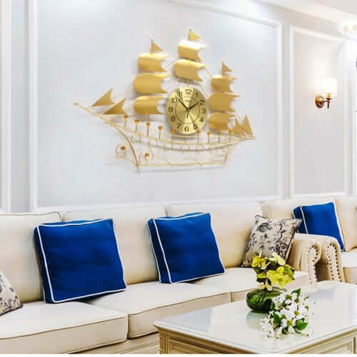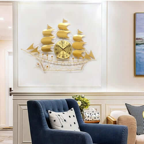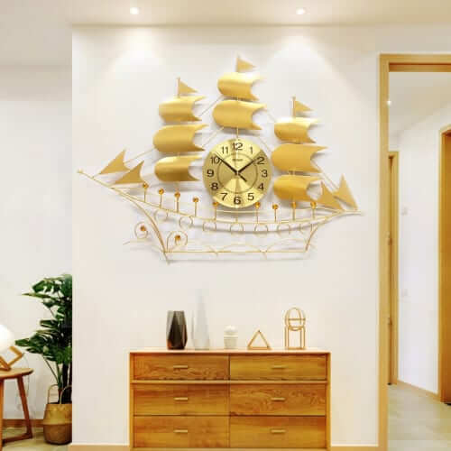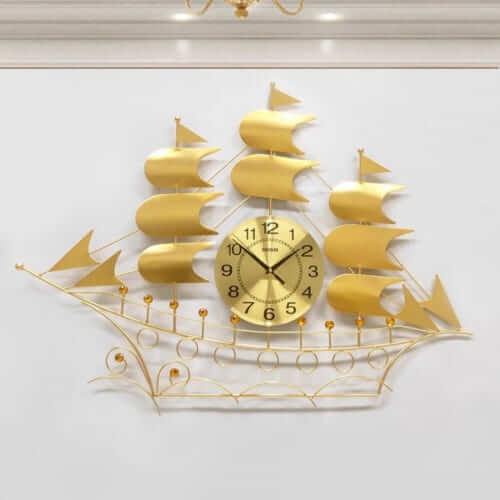 Đồng hồ thuyền buồm, một chiếc đồng hồ toát lên sự sang trọng và quý phái, tạo điểm nhấn cho không gian trang trí với màu vàng óng ả. Thích hợp trang trí tại phòng khách và phòng làm việc và đa dạng phong cách trang trí từ cổ điển đến hiện đại.