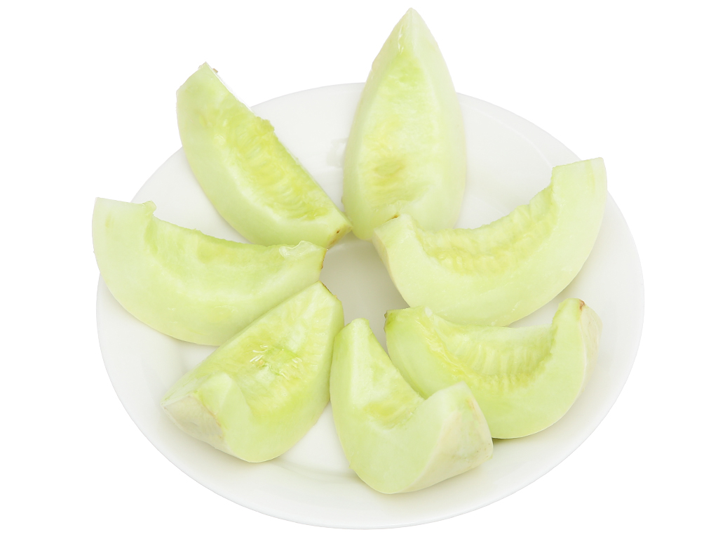 Dưa lê trắng xuất xứ Ninh Thuận, ngọt, độ đường >12 (ngọt bằng hoặc hơn dưa lưới). Dưa là trái cây ngọt dịu, mát, mọng nước rất thích hợp sử dụng trong những ngày hè nóng bức. Ngoài ra dưa tốt cho xương chắc khoẻ, bổ sung điện giải và nước, tăng hệ thống miễn dịch và giúp làn da mạnh khoẻ.