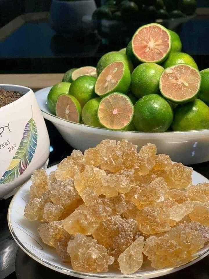 Loại đường được kết tinh từ hơi nước của mật mía trong quá trình nấu mật nên đường có màu vàng óng tự nhiên, thơm mát, ngọt thanh, cục đường góc cạnh và lấp lánh như 1 khối thạch anh. Tác dụng của đường phèn thì hẳn ai cũng biết, mn mua về ngâm chanh đào, chưng tổ yến, nấu chè, rim đác ăn vừa thơm ngon mà lại k sợ bị ngọt và béo như ăn đường tinh luyện. Đặc biệt để hấp với tắc hay cánh hoa hồng cho trẻ em ngậm ho thì cực tốt.