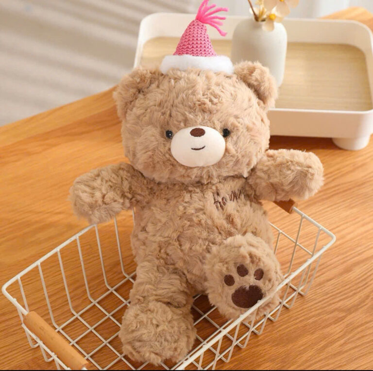 Gấu bông Teddy lông xù đội nón Happy Birthday - Love Bear