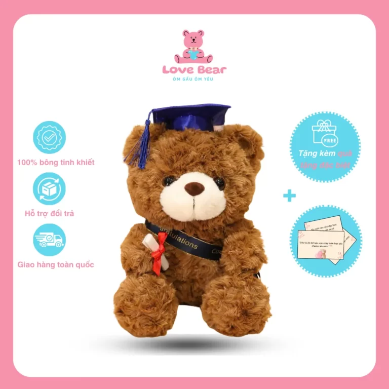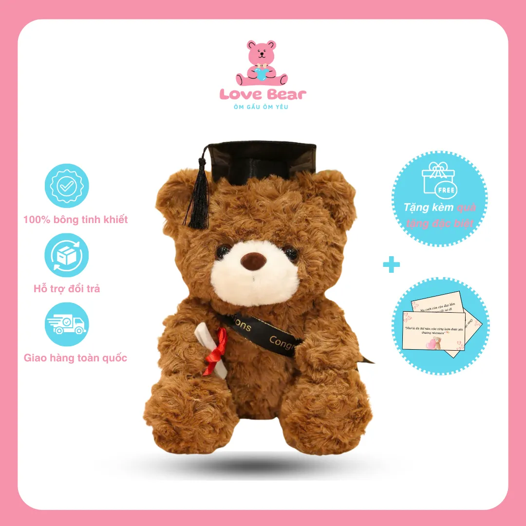 Gấu bông Teddy lông xù đội nón tốt nghiệp - Love Bear