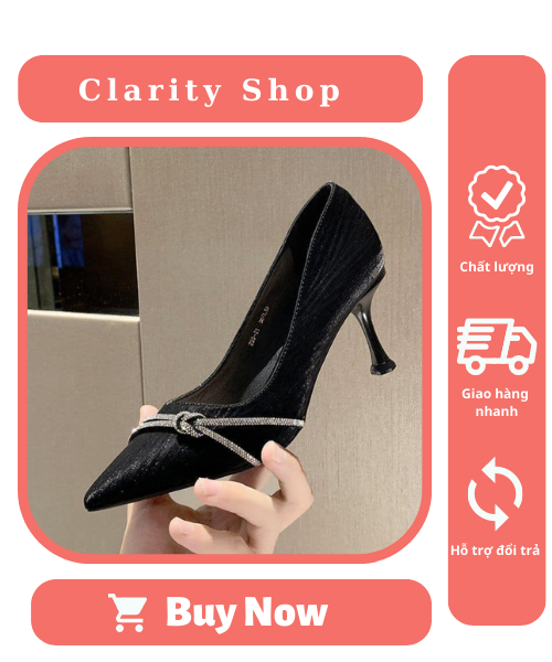 Giày Cao Gót Mũi Nhọn phối dây đính đá làm nơ tạo cho đôi giày trở nên nhẹ nhàng nữ tính khi các cô nàng diện lên trong các bộ đầm váy khi đi học đi làm.