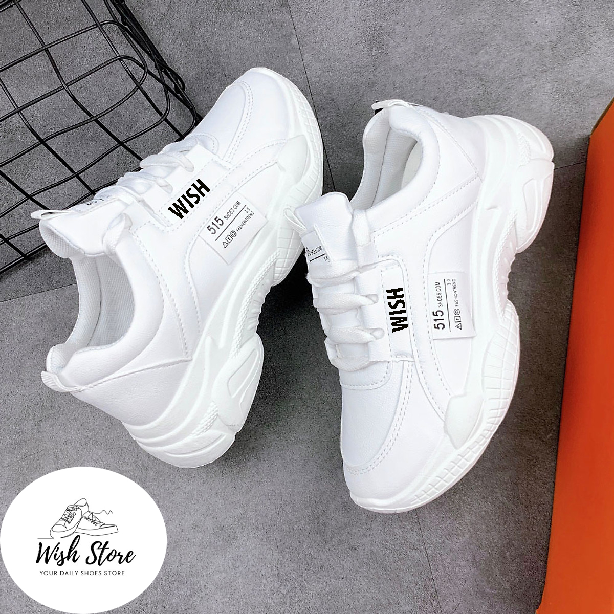Giày Thể Thao Nữ Màu Trắng Bằng Da Không Bong Tróc Cao 4cm Đế Êm Nhẹ