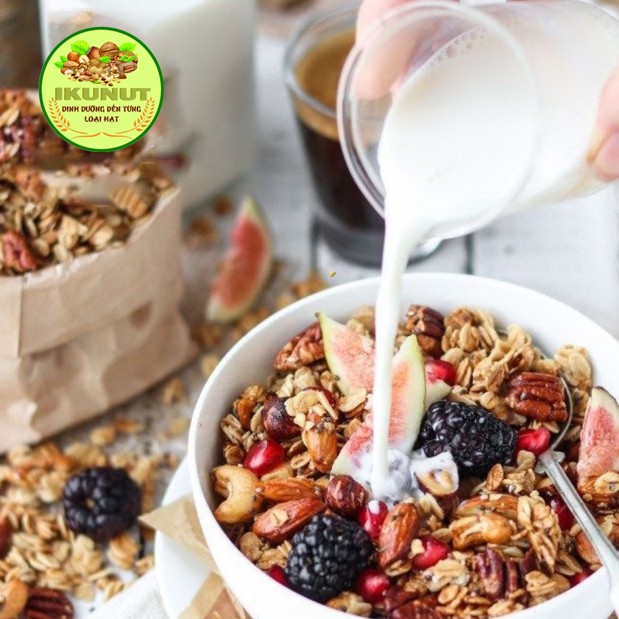 ► Thành phần: Yến mạch/ Hạnh nhân/ Điều sữa/ Hạt bí xanh/ Óc chó/ Việt quốc/ Kiwi/ Nho khô
