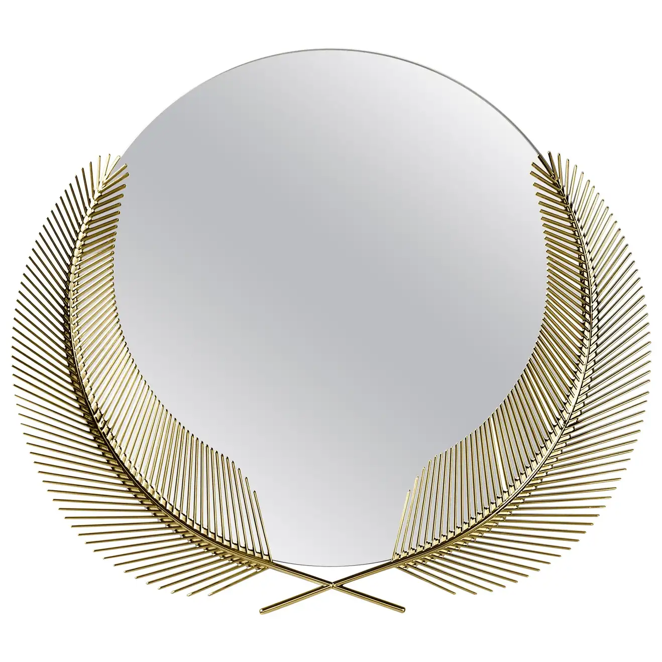 Gương Họa Tiết Lá Cọ với chất liệu đồng được thiết kế vô cùng tỉ mỉ. Hình ảnh chiếc gương được nằm trọn trong 2 chiếc lá cọ giống như mùa hè đang được ôm trọn trong căn phòng của chúng ta.