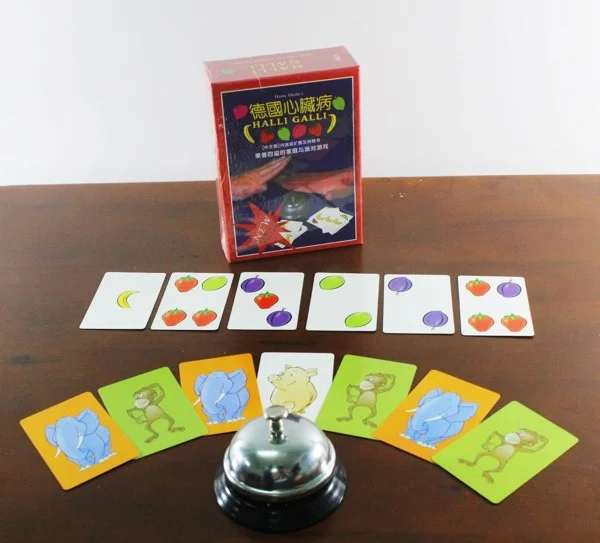 Halli Galli là một trò chơi hành động tốc độ, trong đó người chơi xem các bộ chính xác năm quả. Bộ bài chứa 56 thẻ chơi cho thấy bốn loại trái cây trong các nhóm từ 1 đến 5 và một loại chuông.