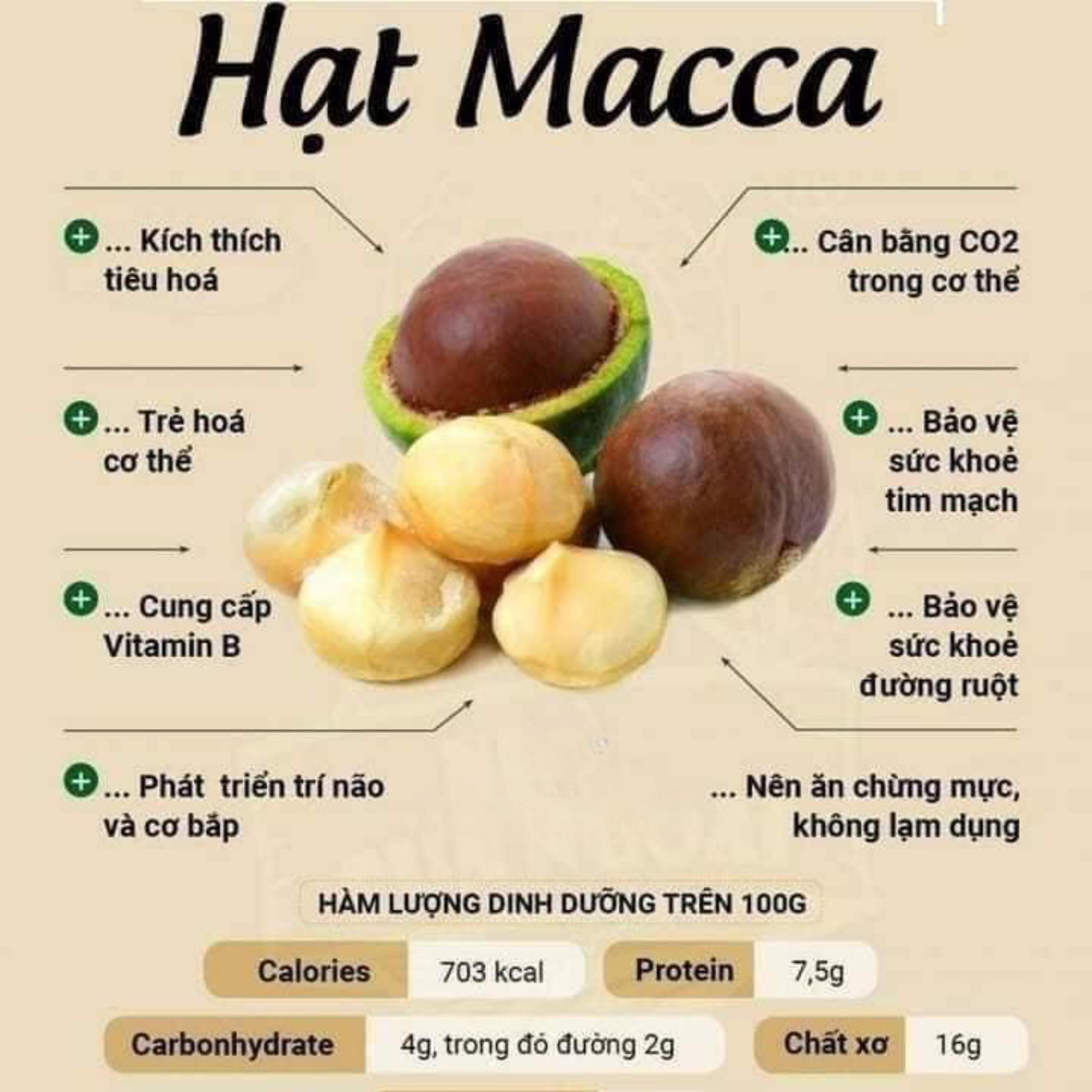 +Hạt giàu calo, nhiều chất béo không bão hòa đơn (cải thiện và tăng sức khỏe tim mạch), vitamin, các loại khoáng chất có lợi cho sức khỏe.