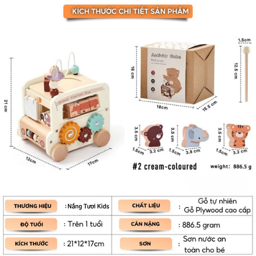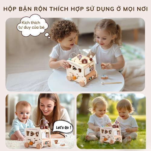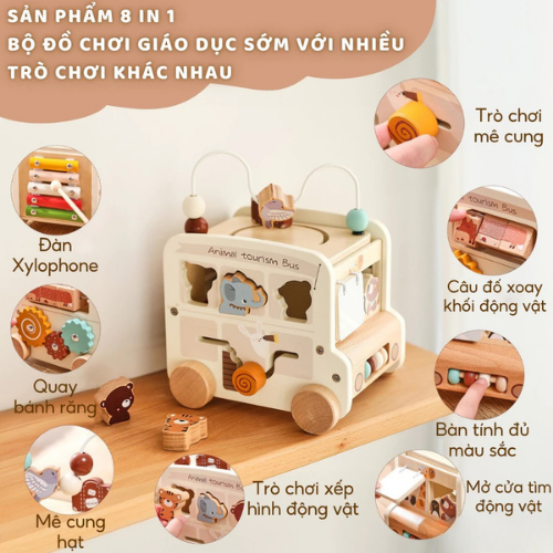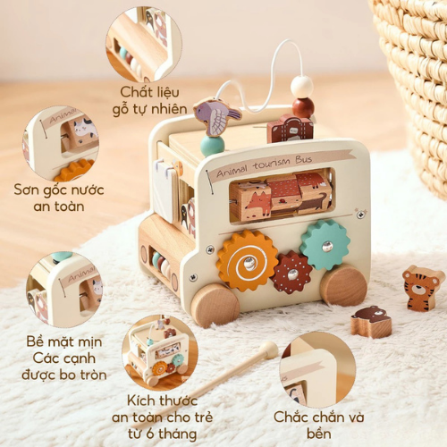 - 6 hoạt động đa dạng: Xếp hình, phân loại màu sắc, lắp ráp động vật, kích thích đa giác quan.