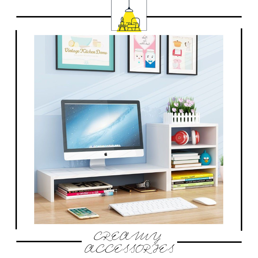 - Kệ màn hình, kệ để màn hình, bàn kê màn hình máy tính giải quyết 2 vấn đề mà các bạn làm việc tại nhà sử dùng Desktop hay Imac
