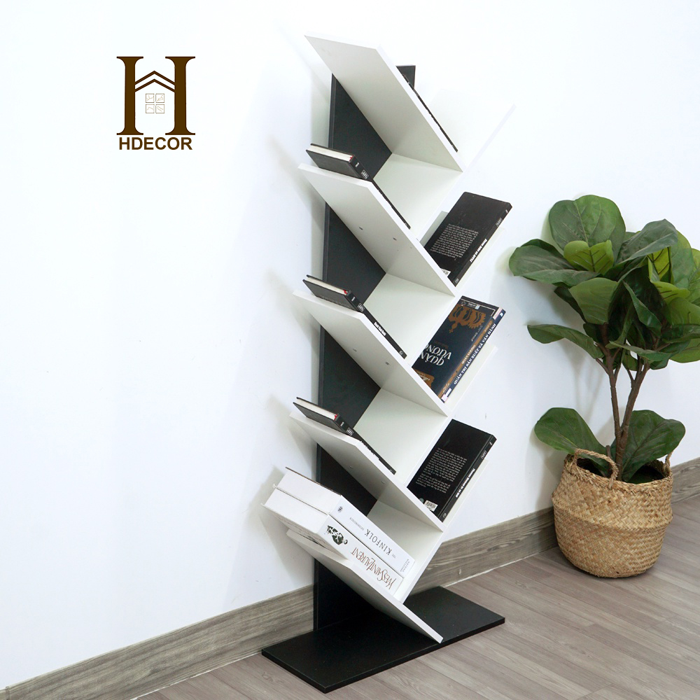Kệ sách hình cây 9 tầng tăng khả năng lưu trữ tiện lợi, Kệ sách đứng gỗ chắc chắn kiểu dáng hiện đại.