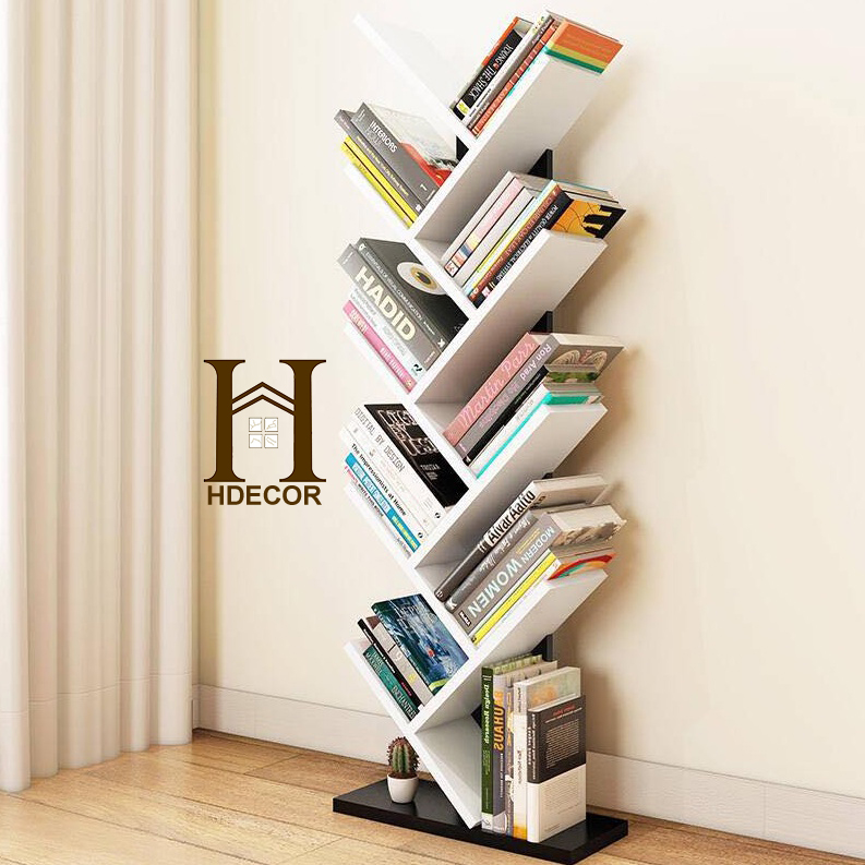 Kệ sách hình cây 9 tầng tăng khả năng lưu trữ tiện lợi, Kệ sách đứng gỗ chắc chắn kiểu dáng hiện đại. Sản phẩm được làm từ gỗ MDF phủ melamine cao cấp chống xước chống nước bề mặt sáng bóng tăng tính thẩm mỹ.
