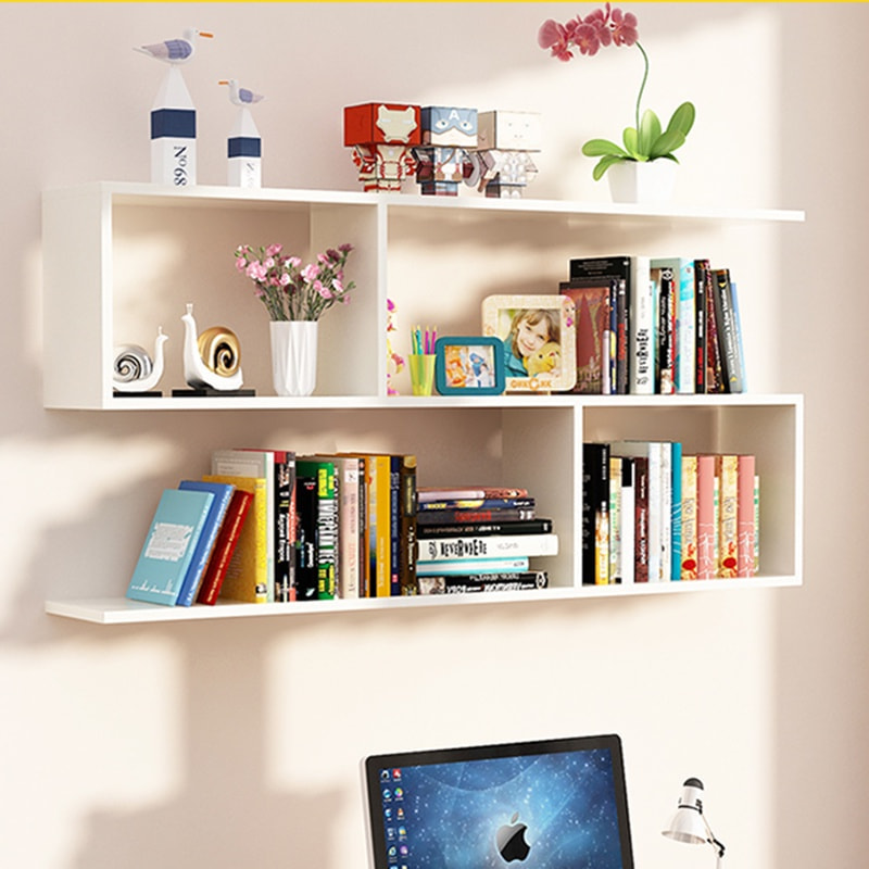 Kệ sách treo tường 2 tầng, kệ gỗ trang trí bàn làm việc máy tính đa năng thông minh phòng khách- GP13