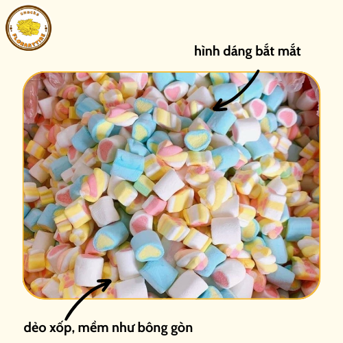 Không chỉ có hình dáng bắt mắt, kẹo Marshmallow còn có hương vị thơm ngon, an toàn với sức khỏe người sử dụng. Marshmallow là một loại kẹo dẻo xốp, mềm như bông gòn, rất được ưa chuộng, dùng để ăn vặt và có mặt trong nhiều thức uống pha chế hay các loại bánh.