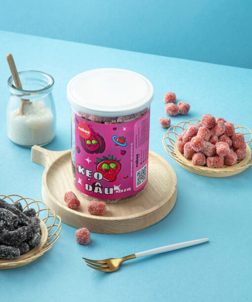 Kẹo dâu tây được chế biến từ những trái dâu tằm và dâu tây chín mọng, có màu sắc bắt mắt. Sự hòa quyện giữa trái dâu và ngào đường tạo nên món kẹo làm mê mẩn nhiều người, đặc biệt là các bạn nhỏ. Đây không chỉ là món ăn vặt được người lớn yêu thích mà trẻ em cũng vậy.