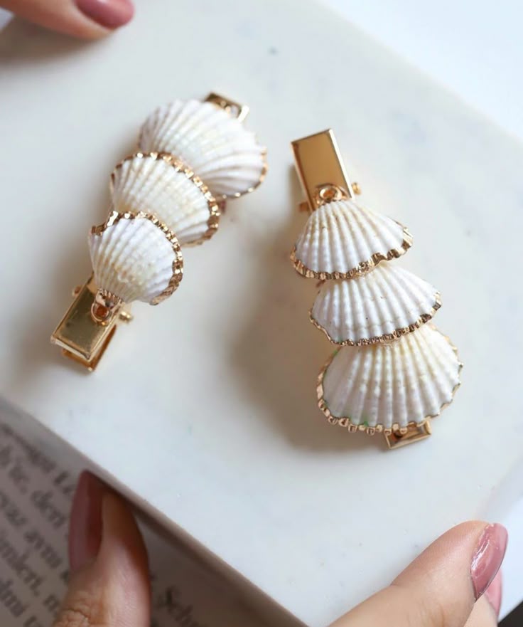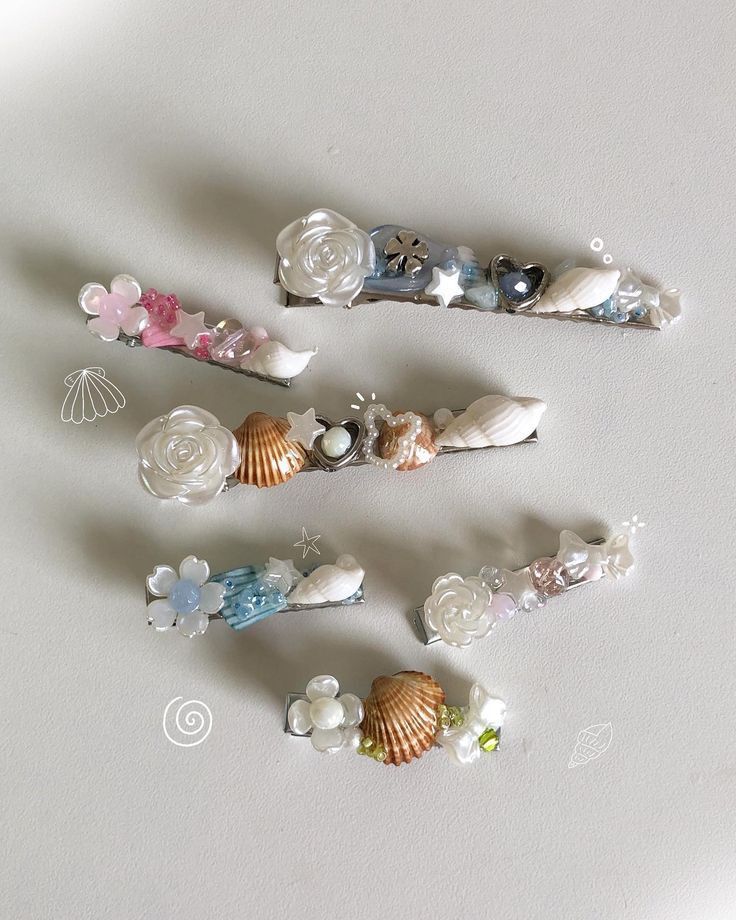 Từng chiếc kẹp tóc được thiết kế tỉ mỉ từ vỏ sò thật, ngọc trai giả, sao biển và đá lấp lánh, tạo nên một bộ phụ kiện tóc nhẹ nhàng – tinh tế – đậm chất biển cả. Dành riêng cho nàng yêu phong cách Boho, Tropical, Vintage hoặc muốn thật nổi bật trong những chuyến du lịch.