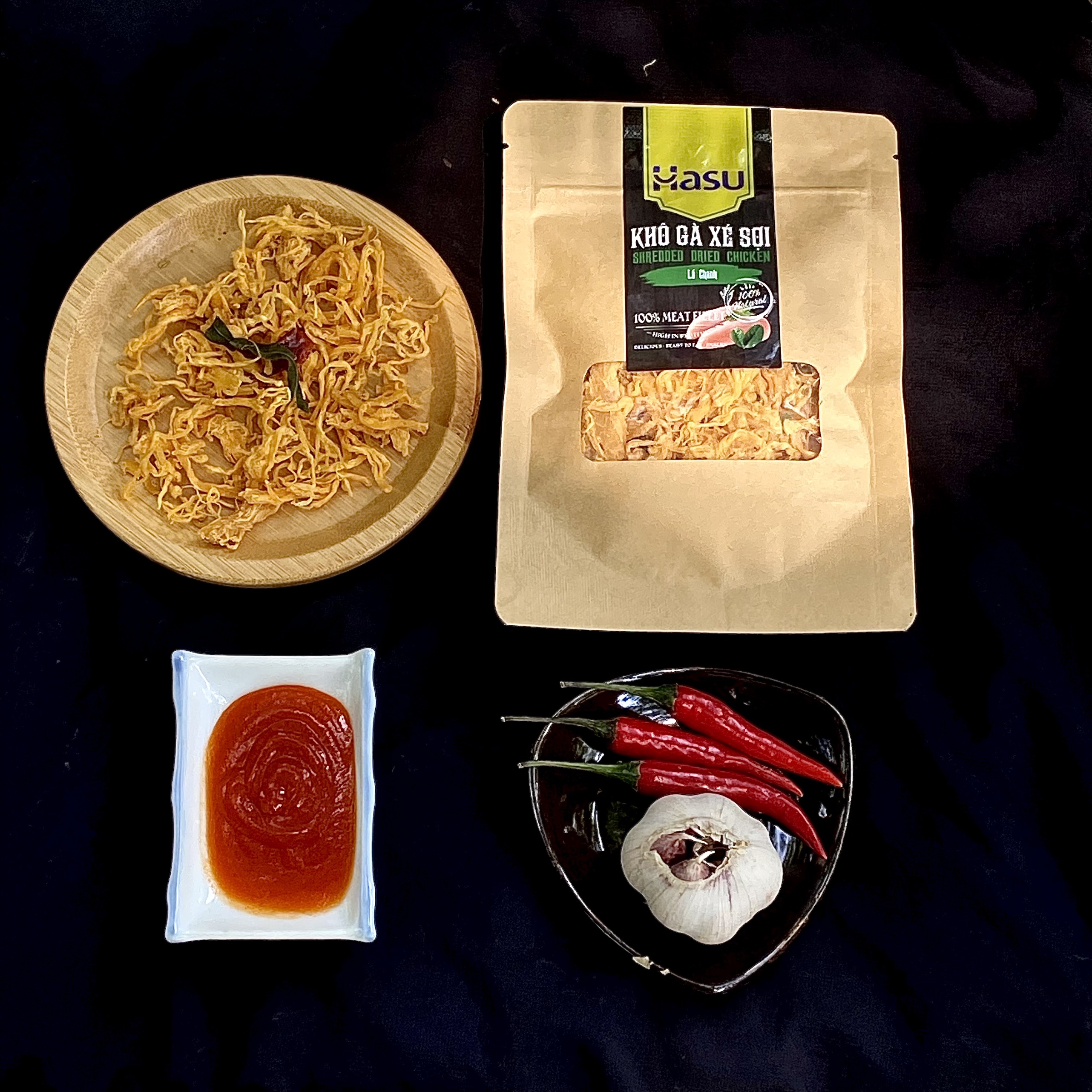 Ức gà, nước mắm, muối ăn, đường kính, dầu thực vật, ớt tươi, lá chanh, nước sạch.