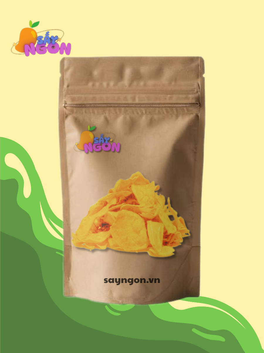 Khoai lang sấy được chế biến từ những củ khoai lang tươi ngon, chứa nhiều chất xơ, vitamin và khoáng chất có lợi cho sức khỏe. Nhờ ứng dụng công nghệ sấy hiện đại, sản phẩm giữ được độ giòn tự nhiên, màu sắc bắt mắt và vị ngọt bùi đặc trưng của khoai lang. Đây là món ăn vặt lý tưởng dành cho mọi lứa tuổi – vừa ngon miệng vừa bổ dưỡng.