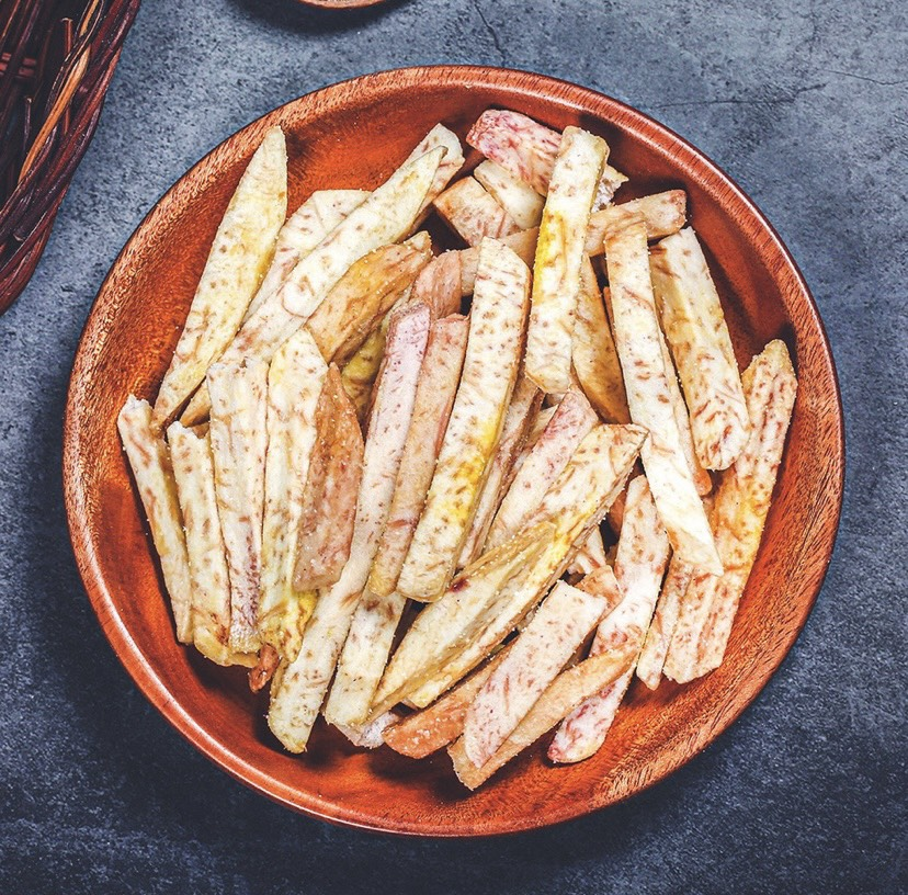 Khoai môn sấy giòn cũng là một sản phẩm tiện lợi và lành mạnh. Với hương vị tự nhiên và