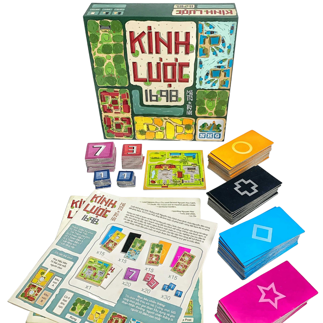 Board game Kinh Lược là trò chơi đặt thẻ dành cho 2-4 người chơi. Bạn sẽ là một Cai Bộ với nhiệm vụ hỗ trợ Nguyễn Hữu Cảnh trong công cuộc tiến vào phía Nam. Khi đó, bạn sẽ được trao quyền xây dựng, quy hoạch các trấn, phủ, khai hoang rừng và phát ruộng. Hãy làm tốt công việc của mình và bạn sẽ có được sự tin tưởng của người dân.