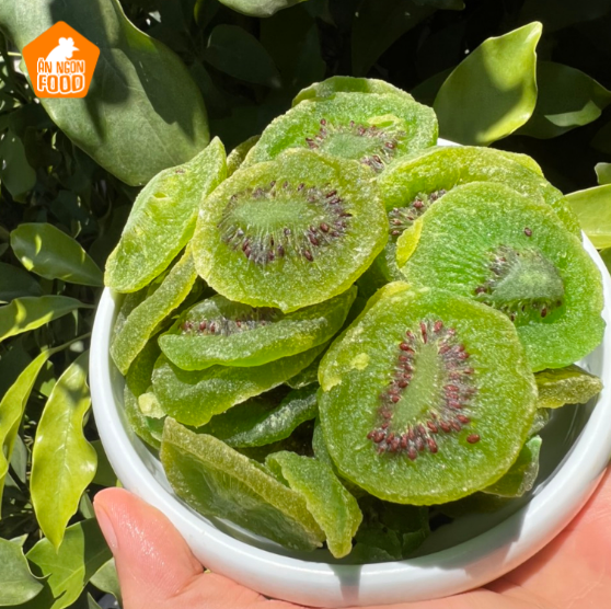 - Quả kiwi sấy khô được bao quanh bởi một lớp đường trắng mỏng được cô đặc từ đường trong quả.