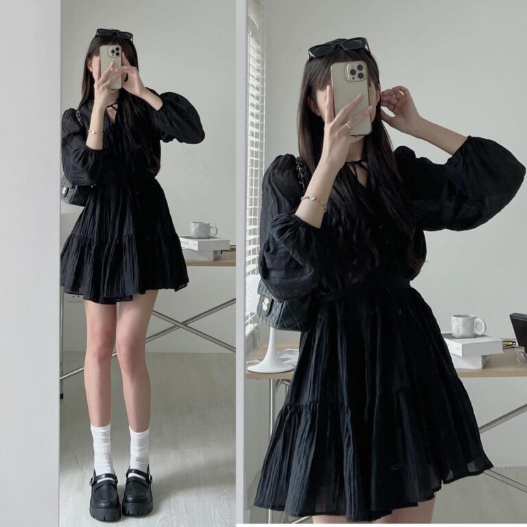1.Đầm baby doll tay bồng