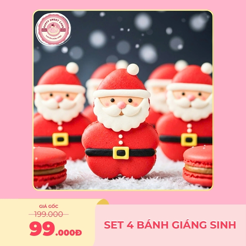 Tên sản phẩm: Set 4 bánh macaron hoạt hìnhi – chủ đề Giáng Sinh