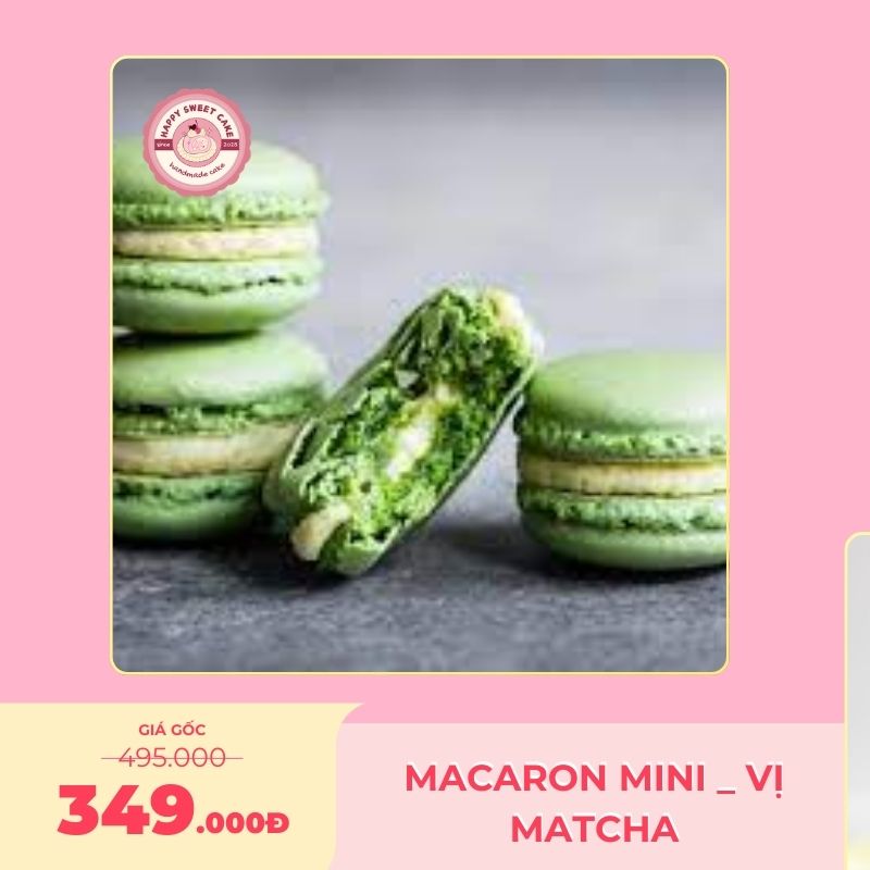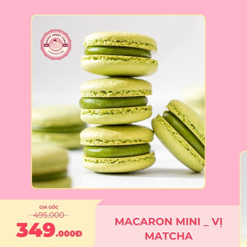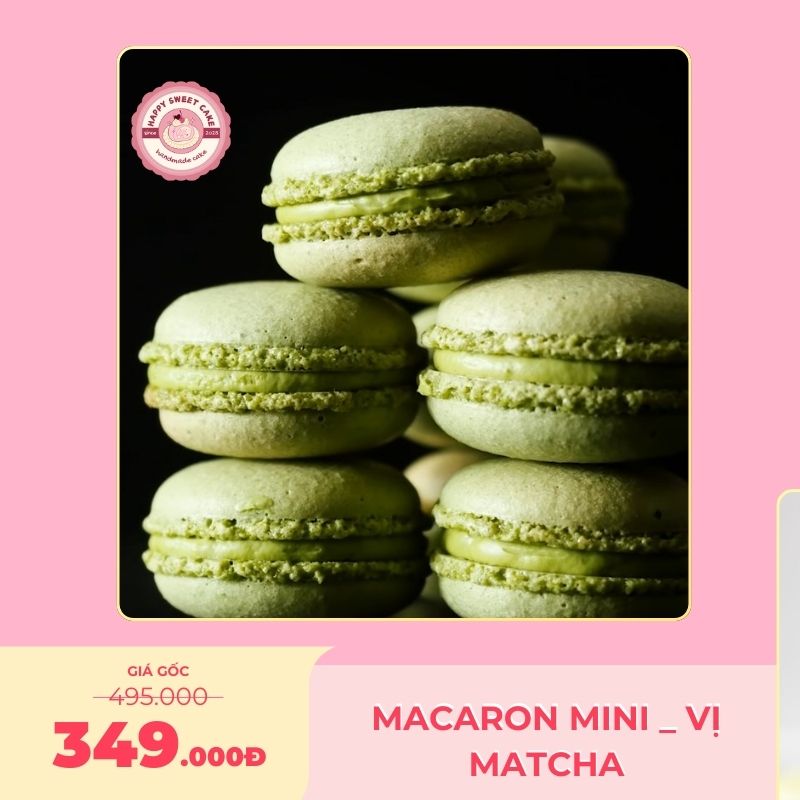 Chiếc macaron mini vị matcha là sự hòa quyện hoàn hảo giữa lớp vỏ giòn nhẹ, mềm mịn bên trong và phần nhân kem trà xanh thơm nồng, thanh mát. Mỗi chiếc bánh là một trải nghiệm đầy tinh tế dành cho những ai yêu thích vị trà xanh dịu nhẹ, đậm đà phong cách Nhật Bản.