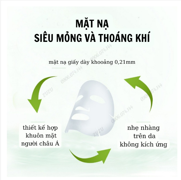 **Chú ý: để tăng cảm giác sảng khoái nên để mặt nạ ở ngăn mát tủ lạnh 10-15’ trước khi dùng.