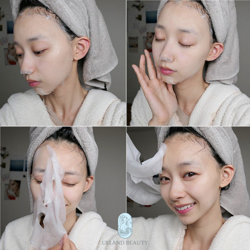 Bước 4: Tháo mặt nạ ra. Vỗ nhẹ để tăng cường khả năng thấm thấu trên da và rửa lại bằng nước sạch.