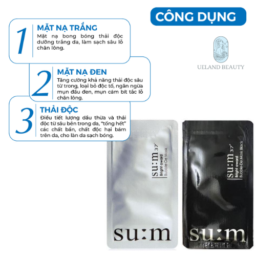 Dưới tác động của môi trường ô nhiễm như hiện nay thì thì việc chăm sóc da là điều mà chị em phụ nữ đặc biệt quan tâm. Bởi khi làn da xấu xí hay mọc mụn nhọt sẽ khiến chị em mất tự tin trong giao tiếp. Mặt nạ thải độc Sum 37 White Award Bubble De Mask Hàn Quốc vẫn luôn nằm trong top những sản phẩm bán chạy của hãng Su:m 37o bởi tính năng thải độc bằng bọt khí và bổ sung thành phần thiên nhiên an toàn cho da mang đến khả năng thải độc đột phá cho làn da sạch bã nhờn, bụi bẩn, dầu thừa, giảm tình trạng phát sinh mụn chỉ sau vài nốt nhạc. Với công dụng 4in1 gồm dưỡng trắng, chống lão hóa, giữ ẩm và ngăn ngừa mụn, mặt nạ Su:m (Bubble Mask) đang dần chiếm được cảm tình của đông đảo “tín đồ mặt nạ” trên khắp châu Á, đặc biệt là các sao Hàn. ĐẶC ĐIỂM NỔI BẬT: Tự tạo bọt ngay lập tức giúp giải phóng lượng oxygen vào trong tế bào da, giúp các chất dinh dưỡng nhanh chóng thấm sâu vào lỗ chân lông đưa chất bẩn ra ngoài. Tích hợp 4 công dụng trong duy nhất trong 1 sản phẩm: Dưỡng da trắng sáng, làm sạch da từ sâu bên trong, chống lão hóa da, giữ ẩm và chống mụn hiệu quả. Cải thiện tông màu da, giúp da thêm trắng sáng hơn sau khi rửa hết bọt khí. Tăng cường dưỡng chất giúp giữ ẩm và làm mịn da hơn. Da được “cấp ẩm” đầy đủ sẽ giảm nếp nhăn, ngăn ngừa hình thành mụn và chống lão hóa da. HƯỚNG DẪN SỬ DỤNG: Bước 1: Thoa một lượng mặt nạ vừa phải lên da (trừ vùng mắt), thoa nhanh tay vì sau 10-15s thì mặt nạ sẽ bắt đầu sủi bọt. Bước 2: Thư giãn 15 phút với mặt nạ Su:m hoặc chờ đến khi hết sủi bọt thì rửa mặt thật sạch với nước. Bước 3: Lau sạch mặt và sử dụng nước hoa hồng để se khít lỗ chân lông và thực hiện các bước chăm sóc da tiếp theo. Lưu ý: Để có hiệu quả, tốt nhất bạn nên dùng 2-3 lần/tuần. PHÂN LOẠI: Màu trắng: Dòng dưỡng trắng đặc biệt, hoàn hảo và làm sạch sâu da mặt với độ lành tính, an toàn, được các ngôi sao nổi tiếng Hàn Quốc yêu thích và chuyên dùng hằng ngày. Màu đen: Bổ sung thêm thành phần than hoạt tính, dòng sản phẩm chuyên dụng làm sạch sâu da mặt, các chất cặn bã, bụi bẩn bám sâu, đặc biệt than hoạt tính giúp tăng khả năng loại bỏ độc tố từ sâu bên trong tế bào da, thải độc với những mỹ phẩm chứa chì, cho bạn làn da khỏe mạnh và trắng sạch. BẢO QUẢN: Bảo quản nơi khô thoáng, tránh ánh nắng mặt trời. THÀNH PHẦN: Sản phẩm chứa than hoạt tính giúp làm sạch sâu lỗ chân lông, đánh bay bụi bẩn trên da. Trái Acai Berry là thành phần giúp đẩy lùi sự lão hóa, giúp làn da luôn căng mịn. NAPS: giúp sản phẩm ngăn ngừa được tình trạng không đều màu da làm da trắng sáng hơn THÔNG TIN SẢN PHẨM: Hãng sản xuất: Su:m 37o Xuất xứ: Hàn Quốc Quy cách: 2ml Màu sắc: Trắng – Đen Mẫu mã bao bì sản phẩm sẽ thay đổi tùy vào đợt nhập hàng.