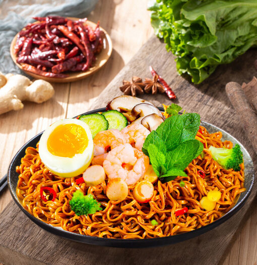 Mì xào tôm trứng món ăn đặc sản Tứ Xuyên. Mì xào tiện lợi, không dùng cho trẻ em dưới 1 tuổi. Món ăn nhanh gọn mà lại ngon bắt miệng với vị Tứ Xuyên đặc trưng