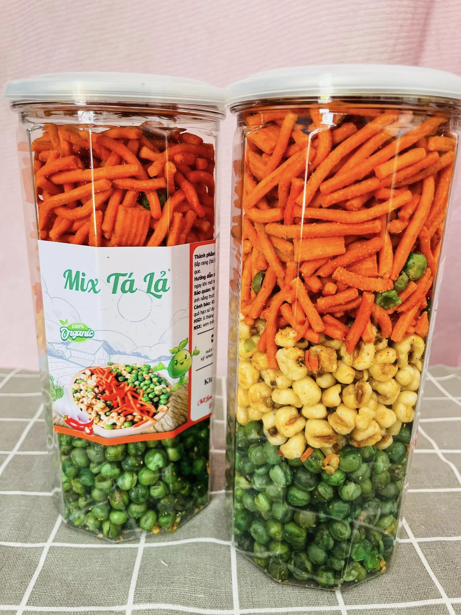 - Thành phần: bắp, đậu hà lan, bimbim que, Tỏi, Muối, Đường, Ớt, Dầu ăn, Gia vị,.. Khi ăn mùi thơm, cay the và vị giòn rụm của cả ba loại hoà cùng ăn rất đặc biệt nha. Quá tiện lợi chỉ trong một hủ có tận ba loại