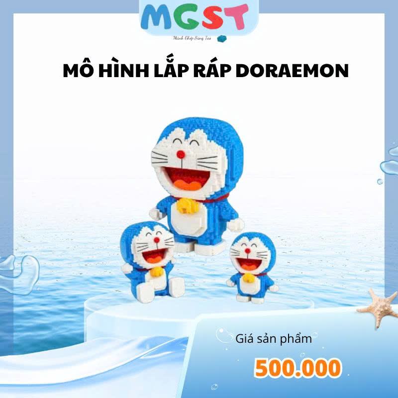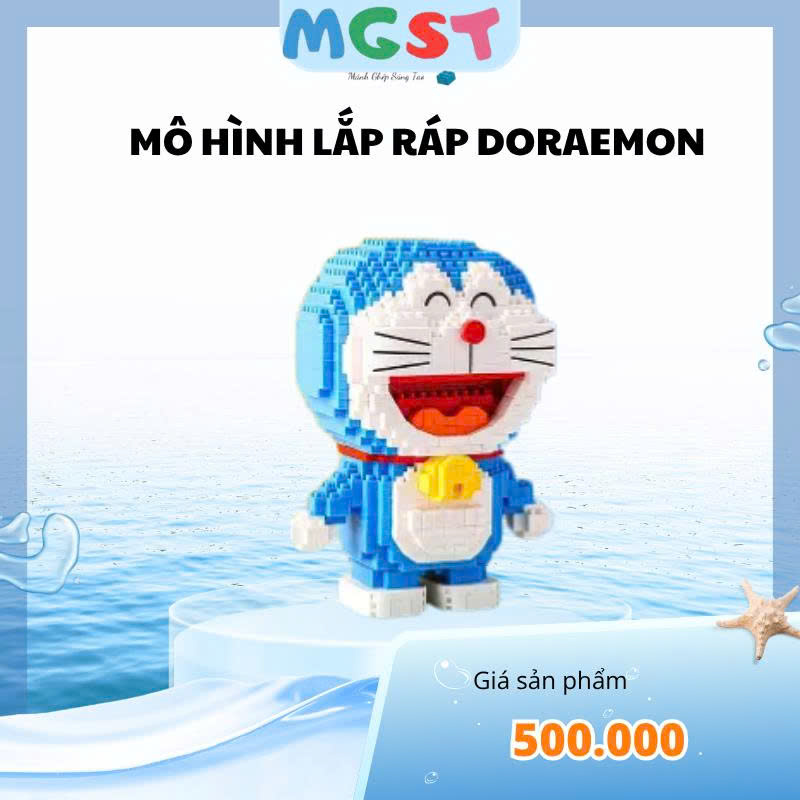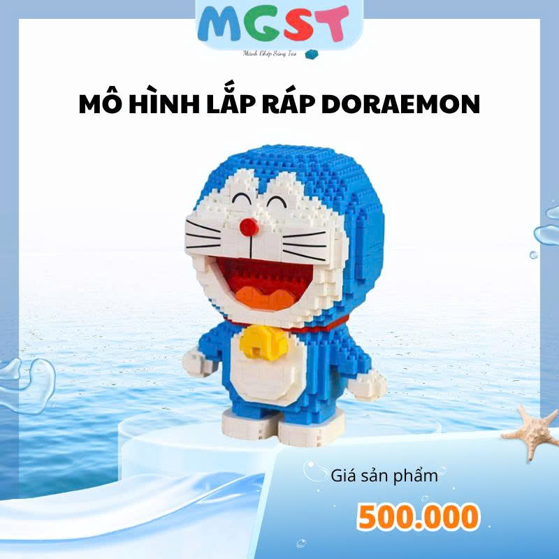 Mô hình tái hiện hình ảnh chú mèo máy Doraemon với thân hình tròn, màu xanh đặc trưng, khuôn mặt dễ thương và chiếc chuông vàng trước cổ. Đây là nhân vật quen thuộc trong truyện tranh và hoạt hình nên rất được yêu thích.