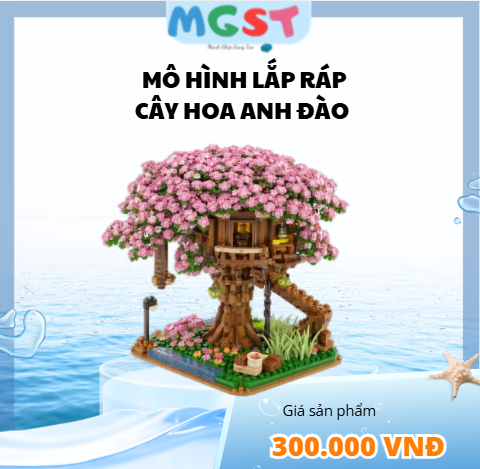 - 🌸 Tán cây: Phần trên là một tán hoa lớn, phủ kín bởi rất nhiều bông hoa màu hồng nhạt và hồng đậm, tạo cảm giác mềm mại và nở rộ như mùa xuân. Các chi tiết LEGO nhỏ được xếp dày đặc để tạo hiệu ứng bồng bềnh tự nhiên.