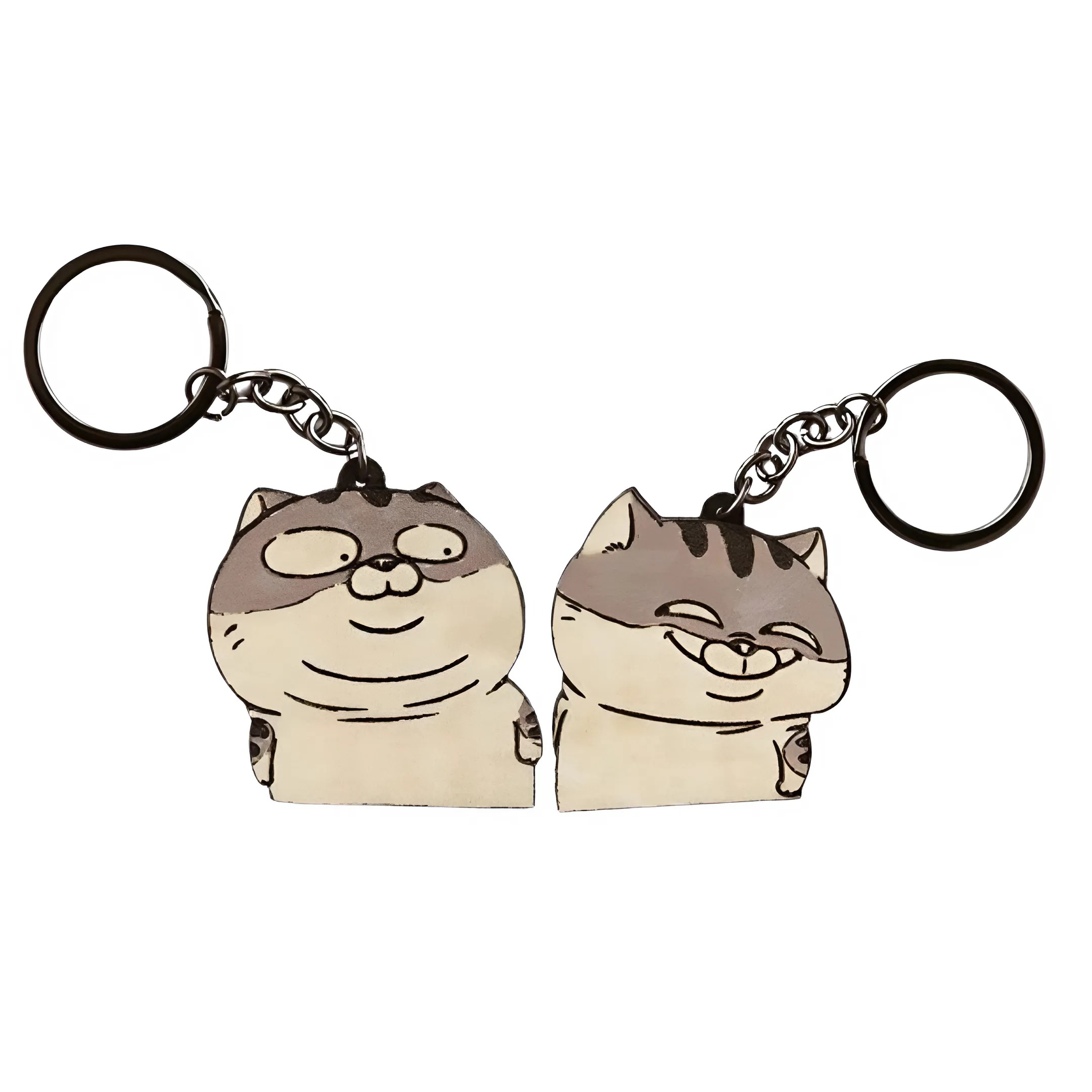 Bộ hai móc khóa hình mèo hoạt hình dễ thương, với mỗi chú mèo mang một biểu cảm độc đáo. Được chế tác từ gỗ và được khắc bởi laser cùng những đường viền đen nổi bật và tô màu theo những chú mèo tạo nên hình ảnh sinh động và rõ nét. Lý tưởng để giữ chìa khóa, trang trí túi xách, ba lô hoặc làm quà tặng đáng yêu cho những người yêu mèo.