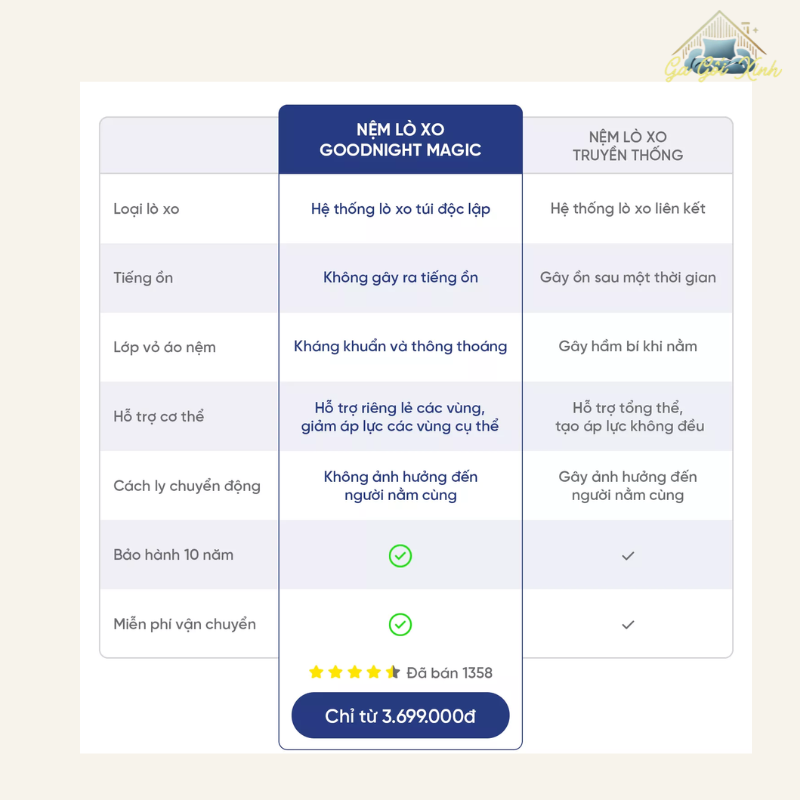 Lợi ích sử dụng Nệm Lò Xo Gagoixinh Goodnight Sleep Wave