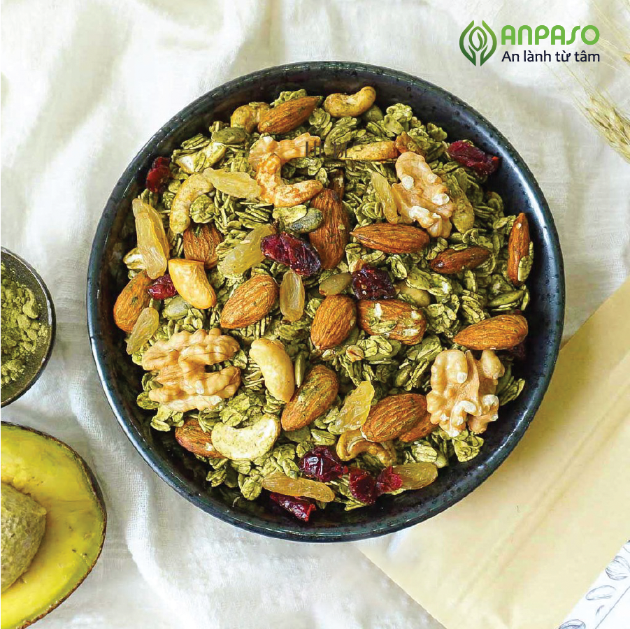 ✅ Bột Matcha Nhật Bản (vụ xuân) thanh mát và hơi chát nhẹ đan lẫn vị ngọt của quả và béo ngậy của ngũ hạt tạo nên sự kết hợp hoàn hảo.