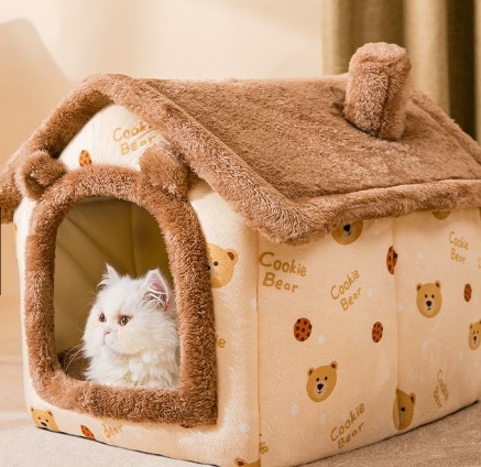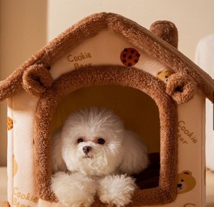 Ngôi nhà có hình dáng đáng yêu của một căn nhà nhỏ, với màu sắc tươi sáng và họa tiết gấu xinh xắn, chắc chắn sẽ làm hài lòng thú cưng của bạn.